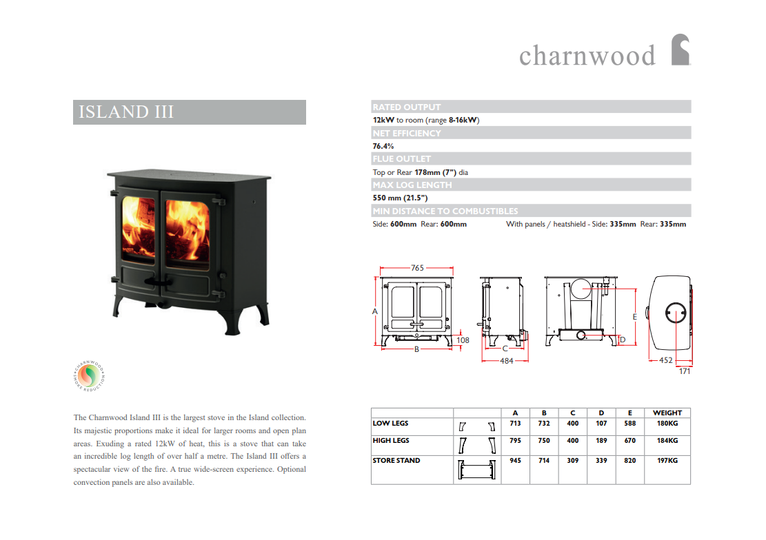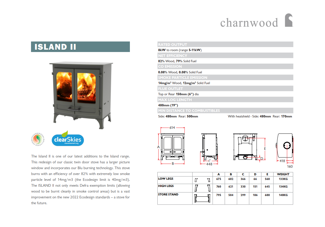 The Charnwood Island range delivers beautifully efficient wood-burning and multi-fuel heating, with options to suit a wide variety of spaces. The all new Island 1 brings reliable warmth and a compact footprint ideal for smaller rooms, the Island 2 sits in the mid-range with increased output and a wider fire view, and the Island 3 offers a high heat output perfect for large living spaces. All models share Charnwood's clean-burn technology, classic styling, excellent efficiency and customisable options.