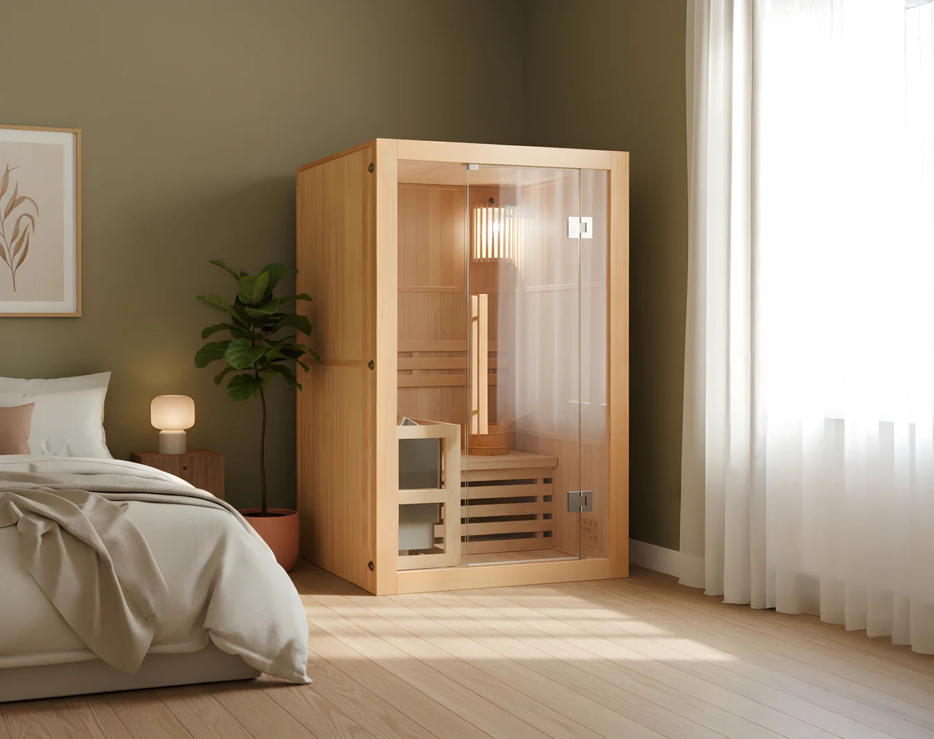 Designed for comfort and ease of use, the Lisbon heats the cabin evenly, allowing you to unwind, relax your muscles, and enjoy the familiar ritual of a traditional sauna session. Its balanced size makes it suitable for a variety of indoor spaces while still offering a comfortable and immersive experience.