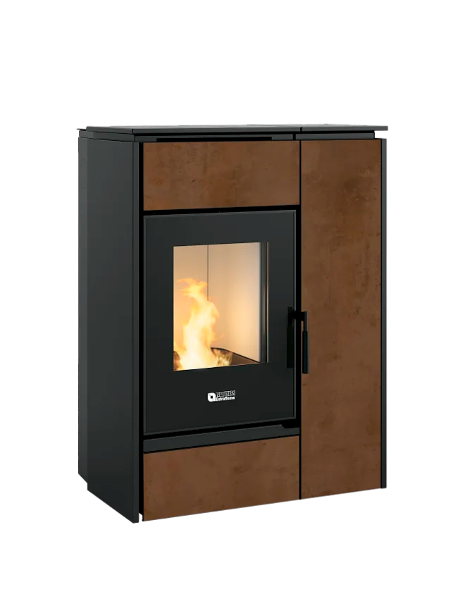 The Margaret is an air-tight combination pellet and wood stove that offersmaximum flexibility in one single appliance. It allows you to switch between pellet and log heating depending on your preference, combining automated comfort with the traditional feel of a real wood fire. With its solid construction, large flame view and modern design finishes, Margaret is ideal for well-insulated homes that want efficiency, versatility and strong visual presence in one solution.
