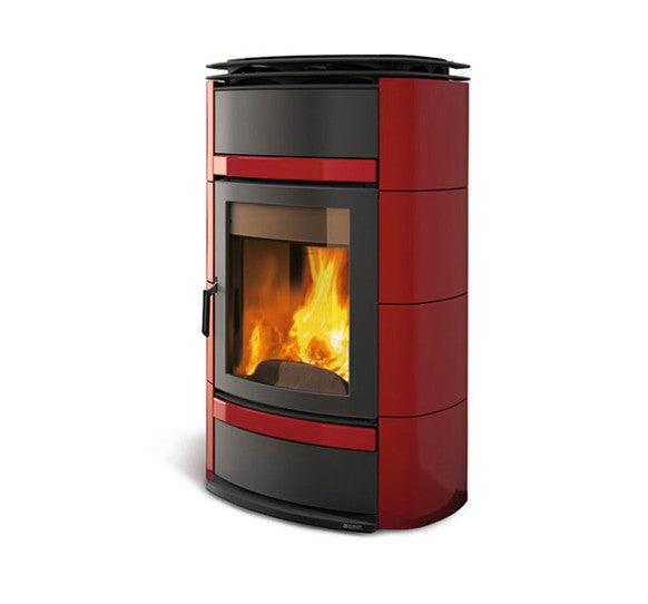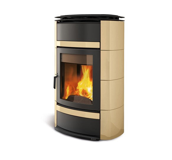 Features: External facing in majolica • Base, head and door in cast iron • Internal hearth covering in steel • Vertical flame hearth • Adjustable primary air, preset secondary and tertiary air with post combustion system • DSA security device (DSA valve not included) • Ceramic glass heat-resistant 750°C in a single piece.